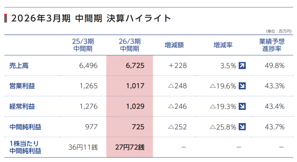 - 売上高:67.2億円(前年同期比 +3.5%)